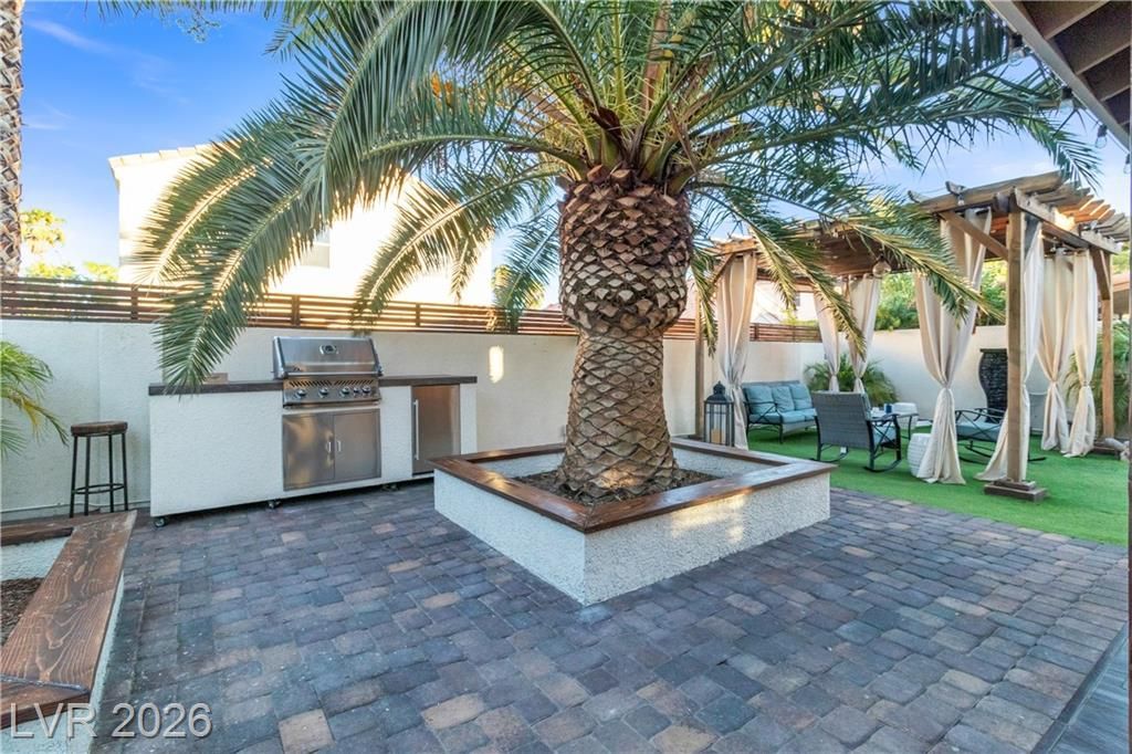 Discover the perfect HOA-free haven in North Las Vegas! This stunning two-story residence boasts a spacious open living room with a cozy fireplace and formal dining area, perfect for entertaining. The recently renovated kitchen showcases upgraded countertops, a expansive bar, and modern lighting fixtures throughout, exuding a sense of sophistication. The beautifully landscaped backyard is a serene oasis, featuring a charming gazebo, lush turf-seating area, and stylish pavers replacing traditional rocks. This exceptional property offers a unique blend of comfort, style, and functionality. Don't miss this incredible opportunity to make this house your dream home in North Las Vegas!