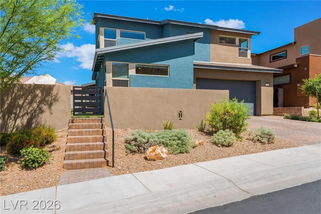 Welcome to this beautiful two-story, 4-bedroom, 4-bath home in the heart of Summerlin. With a bright open-concept layout and a downstairs bedroom with a full bath, this home is perfect for guests and everyday living. The gourmet kitchen features a large island, custom cabinetry, high-end stainless-steel appliances, plus reverse-osmosis and alkaline water systems. Upstairs, the spacious loft offers endless possibilities for a second living area, office, or playroom. The primary suite is a true retreat with upgraded closets and a private balcony showcasing stunning mountain and city views. Complete with a dedicated gym space, custom BBQ area, and incredible scenery, this home is made for relaxing, entertaining, and enjoying the best of Summerlin living.